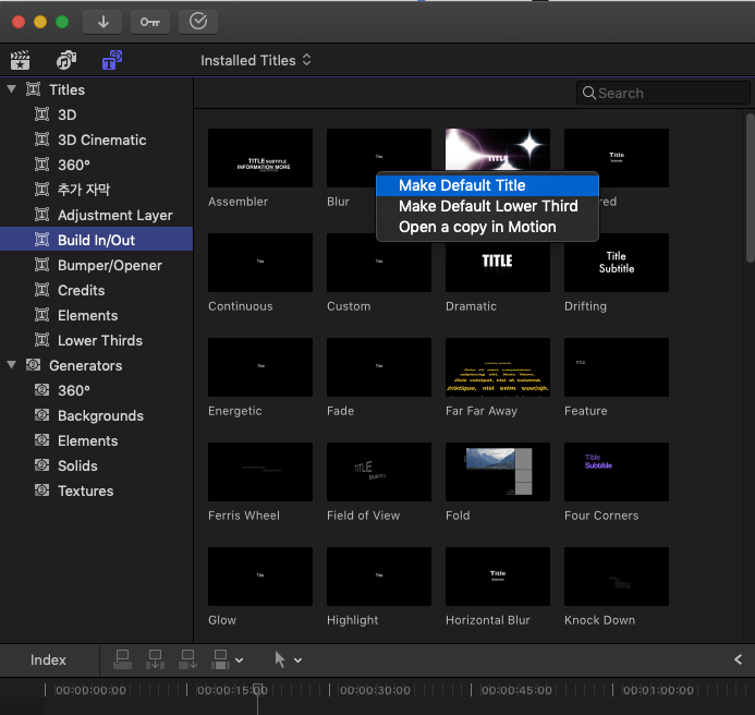 Basic Title은 파이널 컷 프로에 기본적으로 설정된 자막이다.