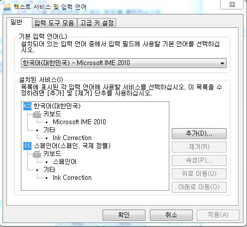 1번 누르면 스페인어인데 한글로 바꾸기위해 한 번 더 누르면 또 스페인어이다.
