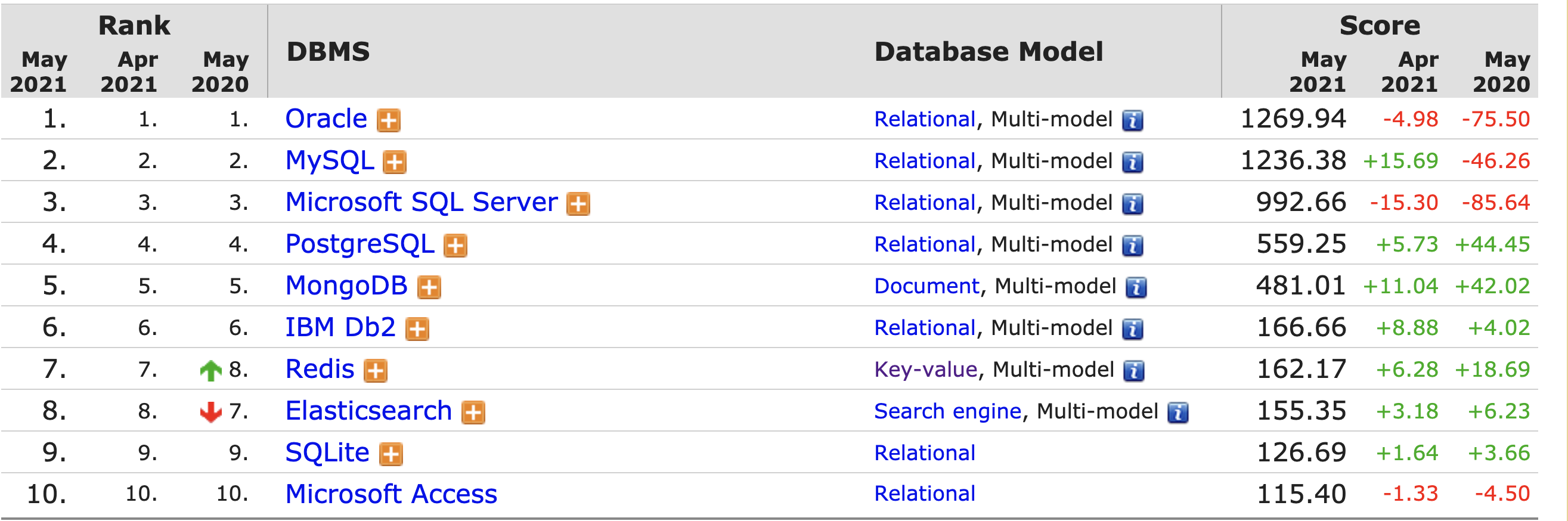 이렇답니다. 오라클이라는 초대형 데이터베이스와 견주어도 스코어가 막상막하인것 보이시나요?