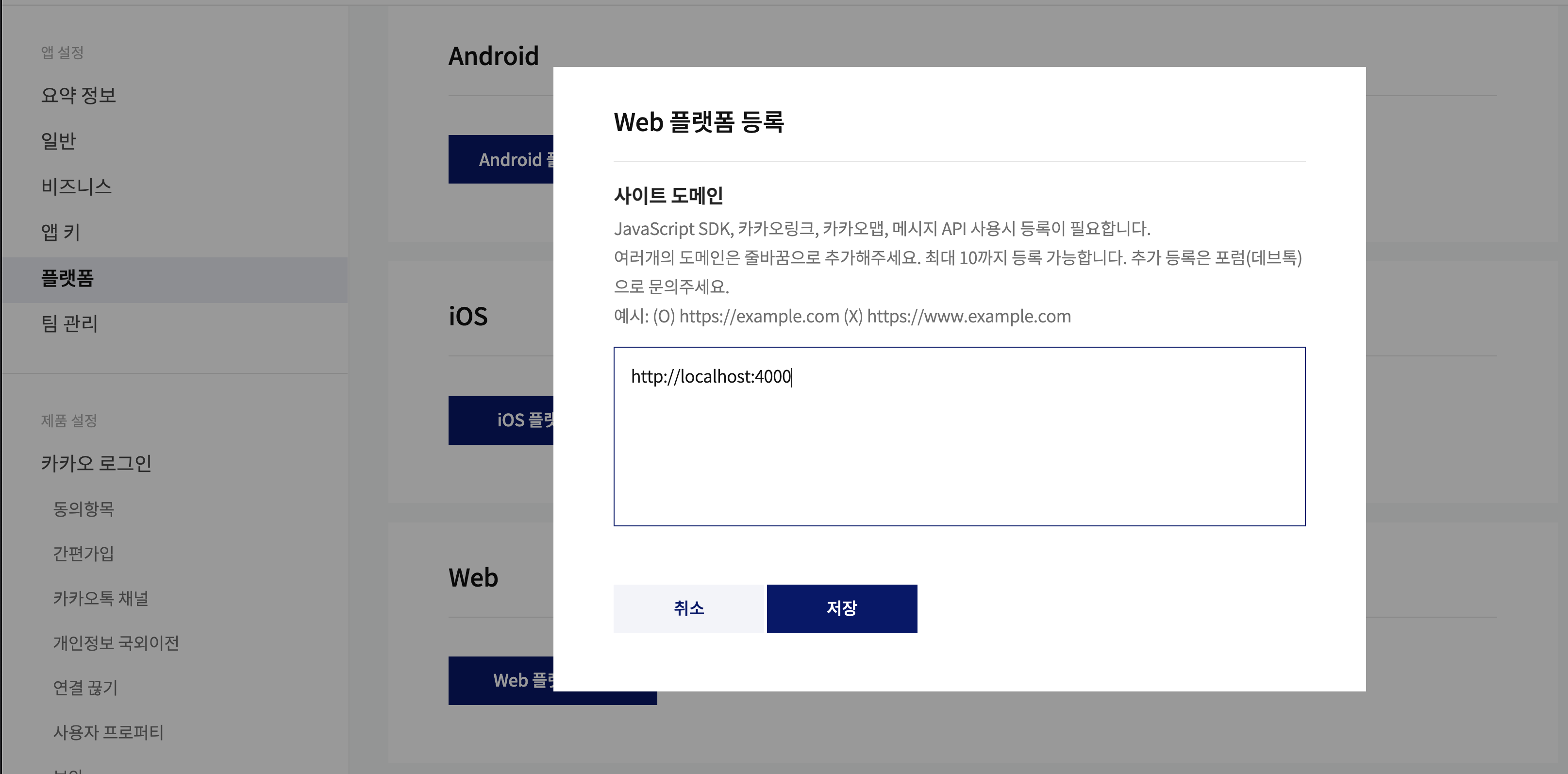 3. 플랫폼 -> Web 플랫폼 등록