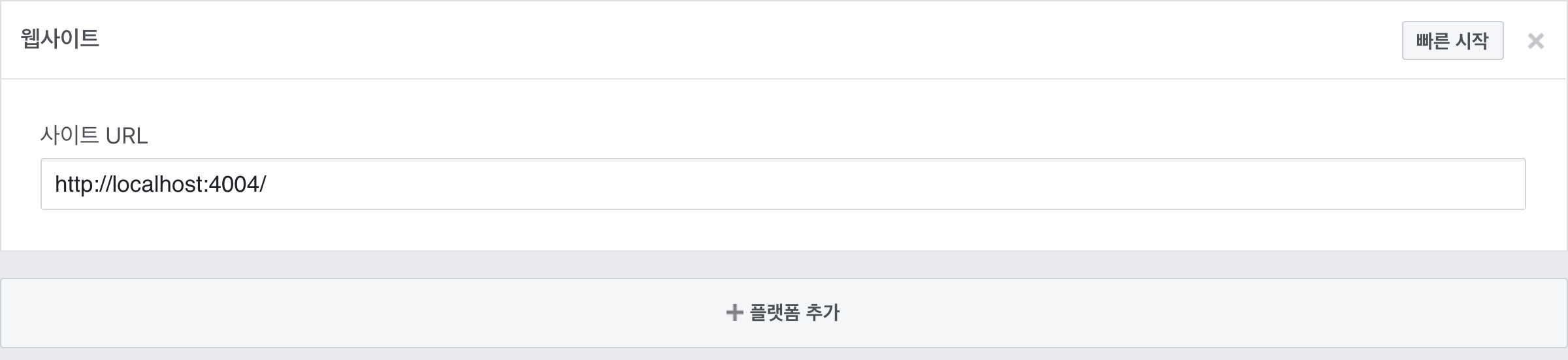 또한, 웹페이지로 사용할 것이므로, 맨 밑으로 스크롤을 하게 되면 + 플랫폼 추가 가 존재한다. 이것을 클릭.