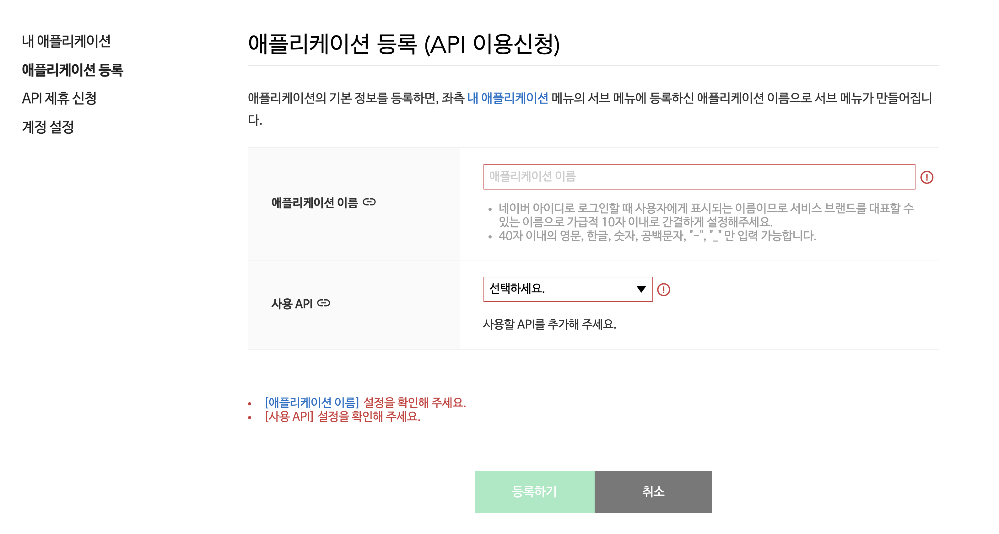 애플리케이션 등록 >> 입력 후 등록하기