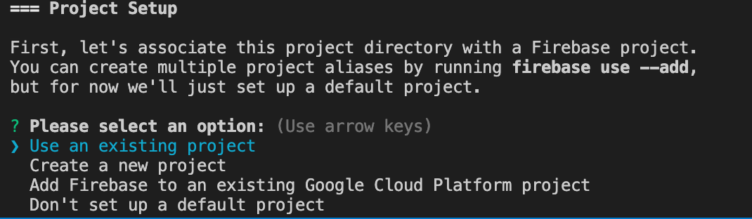 ? Select a default Firebase project for this directory: (Use arrow keys)