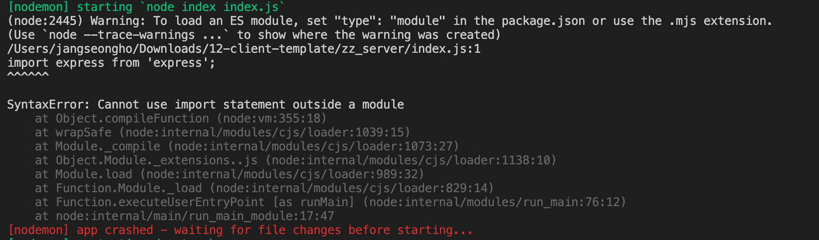 Warning: To load an ES module, set "type": "module" in the package.json or use the .mjs extension.