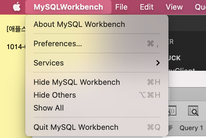 1. 상단에 MySQLWorkbench > Preferences를 눌러준다