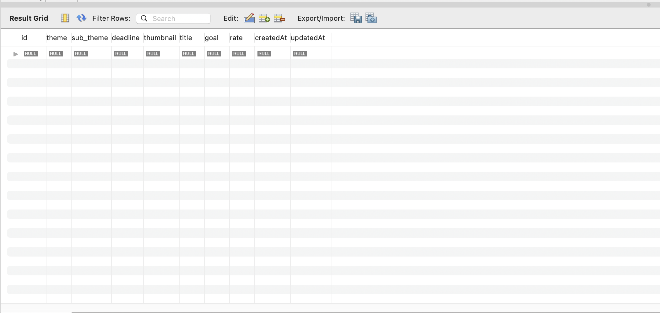 아래쪽이 Result Grid이다.