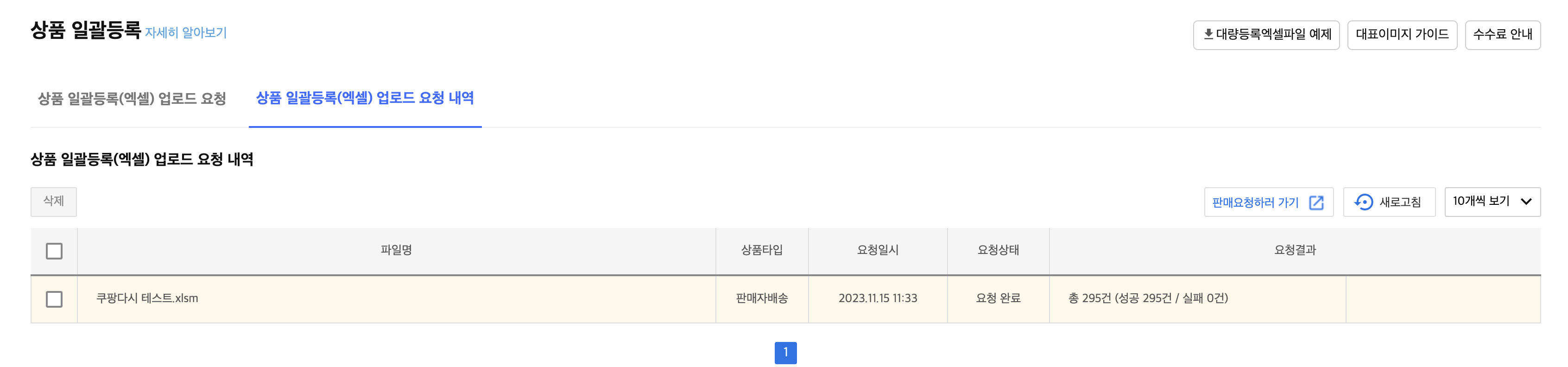 성공이라면, 쿠팡에 상품들이 모두 업로드되었고 '판매대기' 중이 된 것이다.