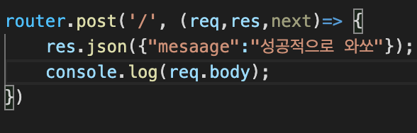 그리고, 보낼때는 res.json({...})으로 응답할 수 있다.