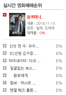2. 개봉한지 2,3달된 영화 목록만 있고, 현재 상영중인 영화 자체가 뜨지 않습니다.
